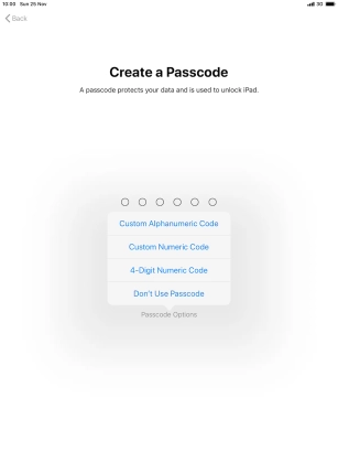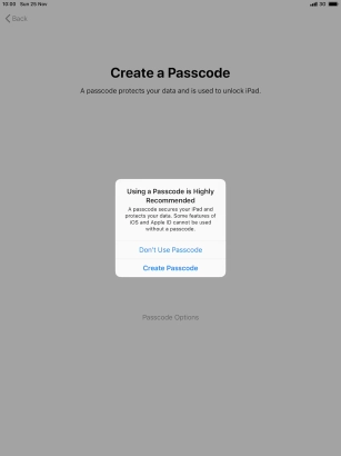 Follow the instructions on the screen to turn on use of lock code or press Don't Use Passcode.