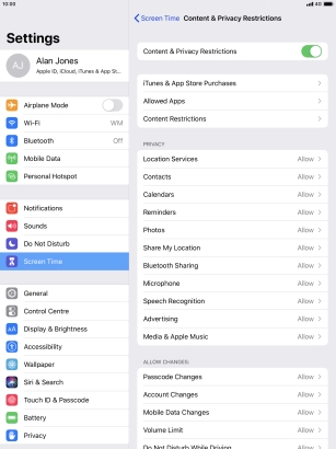 Press the indicator next to "Content & Privacy Restrictions" and follow the instructions on the screen to select settings for content and privacy restrictions.