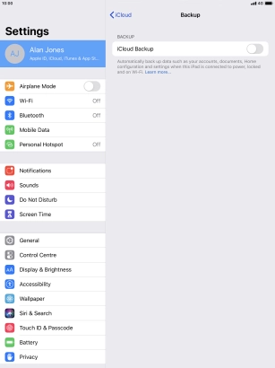 Press iCloud Backup.