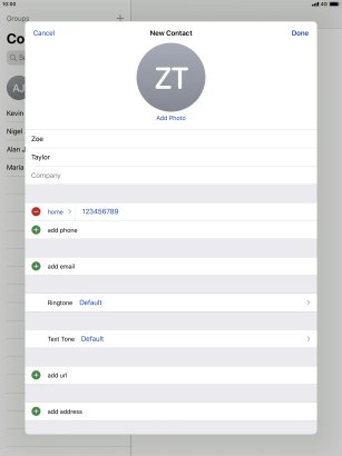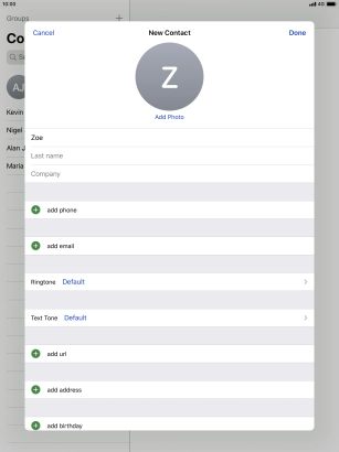 Create contact on your Apple iPad Pro 10.5 iPadOS 13.1