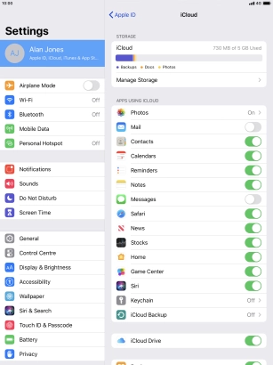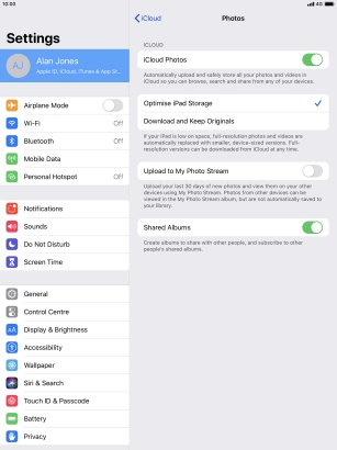 Synchronise the contents of your Apple iPad Pro 10.5 iPadOS 13.1 using iCloud