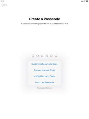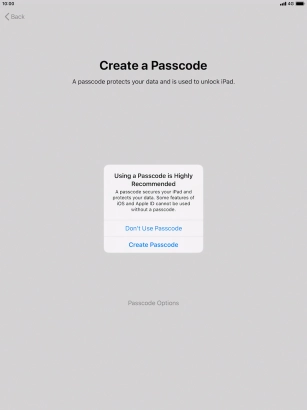 Follow the instructions on the screen to turn on use of lock code or press Don't Use Passcode.