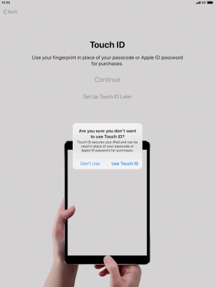 Follow the instructions on the screen to turn on use of Touch ID or press Set Up Touch ID Later.