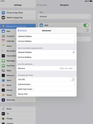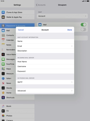 Set up your Apple iPad Pro 10.5 iPadOS 13.1 for IMAP email
