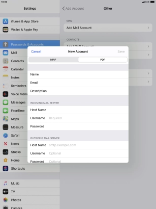 Press Password and key in the password for your email account.