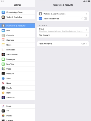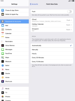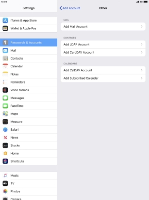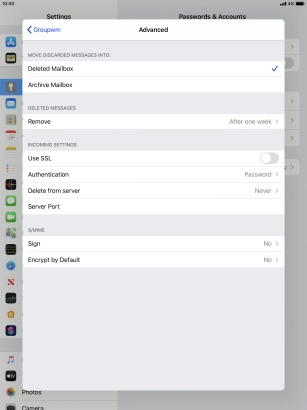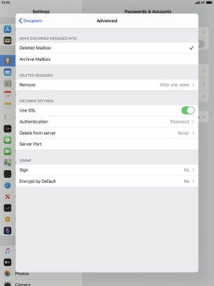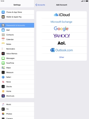 Press the required email account and follow the instructions on the screen to select settings for the specific account.