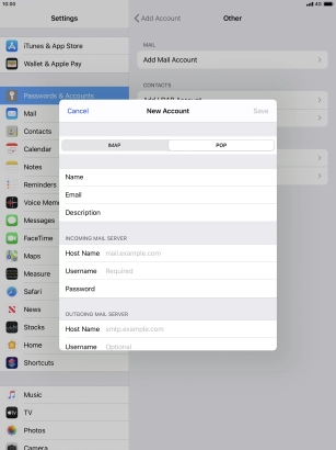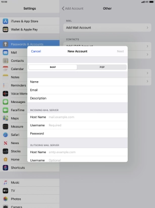 Press Username and key in the username for your email account.