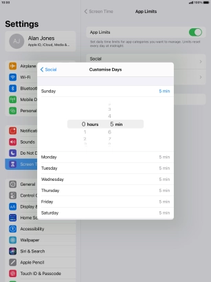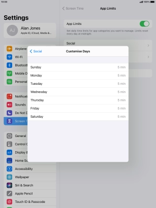 5. Select days for time limits of app usage