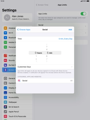 4. Select time limits for app usage
