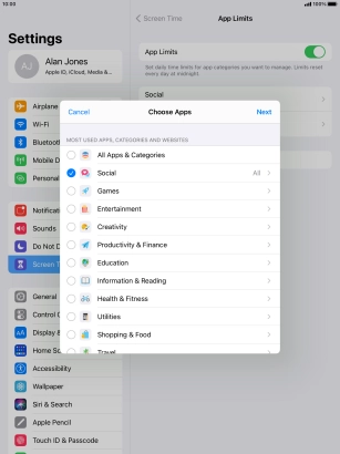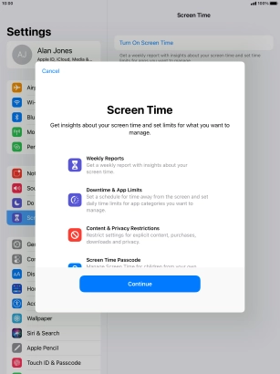 Select Screen Time settings on your Apple iPad Pro 10.5 iPadOS 14.2