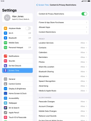 10. Select settings for content and restrictions