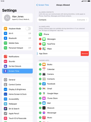 Press the remove icon next to the required app to remove it from the list of allowed apps during Downtime.