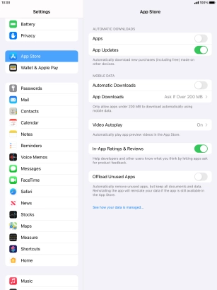 Turn automatic synchronisation of apps and app content on your Apple iPad Pro 10.5 iPadOS 14.2 on or off