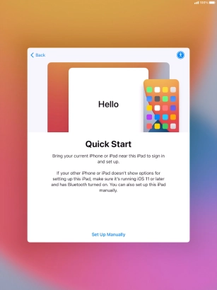Follow the instructions on the screen to transfer content from another device running iOS 11 or later or press Set Up Manually.