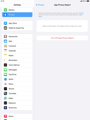 Press the indicator next to "Turn On App Privacy Report" to turn on the function.