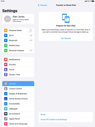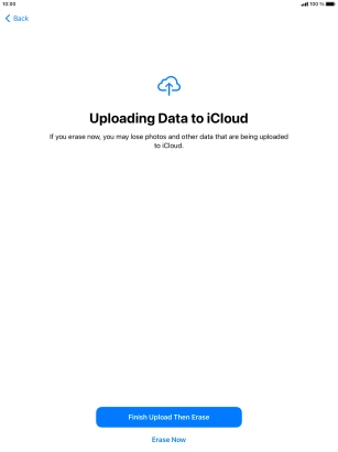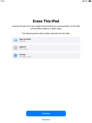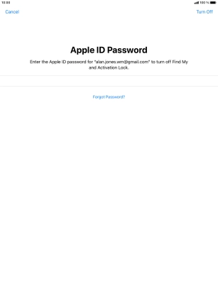 Key in the password for your Apple ID and press Turn Off. Wait a moment while the factory default settings are restored. Follow the instructions on the screen to set up your tablet and prepare it for use.