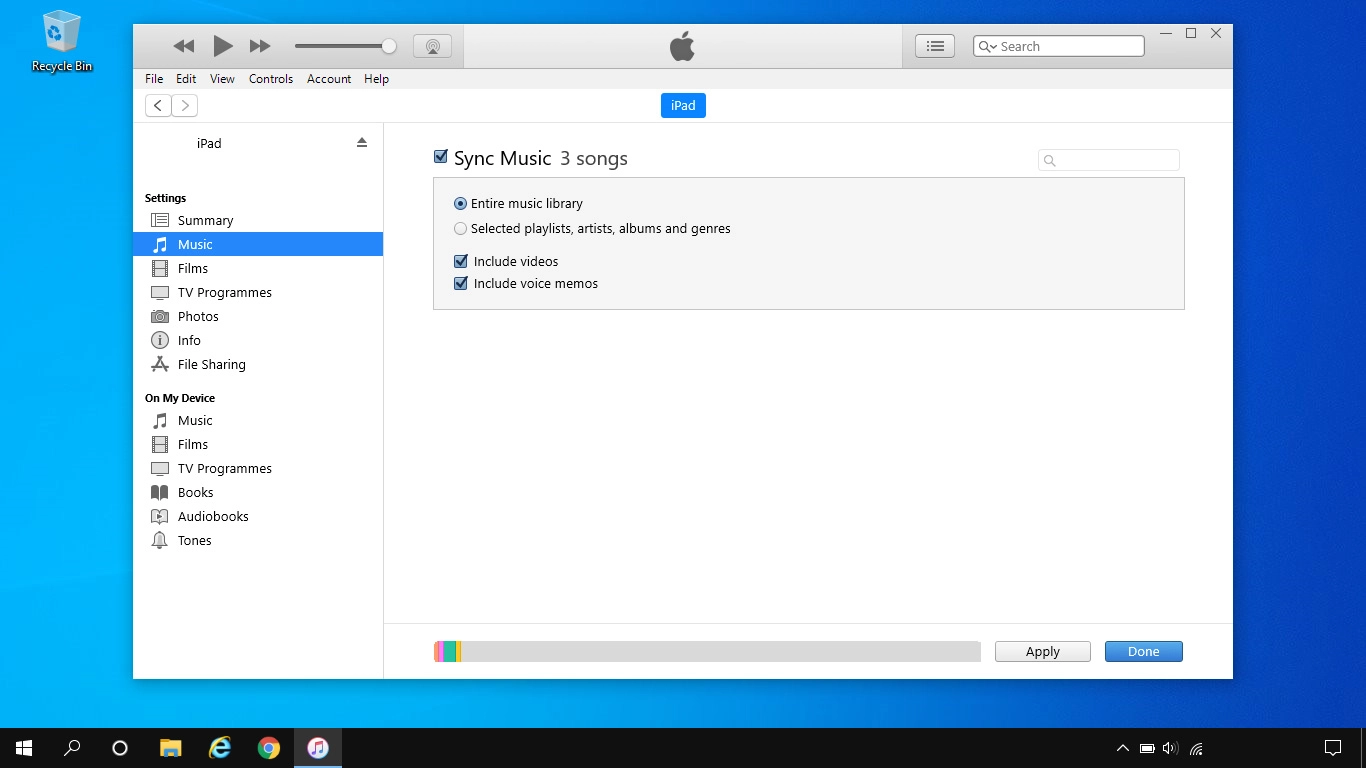 Depending on your settings in iTunes, the transfer may start automatically. To manually start the transfer, click the iPad icon.