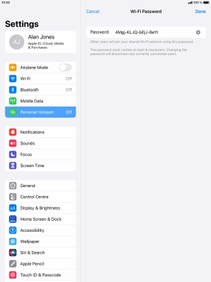 2. Key in the password for personal hotspot