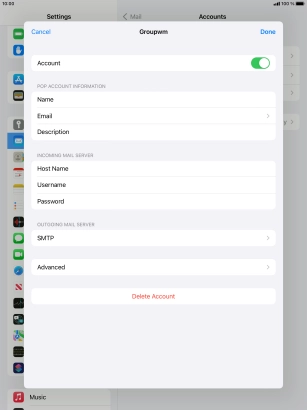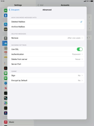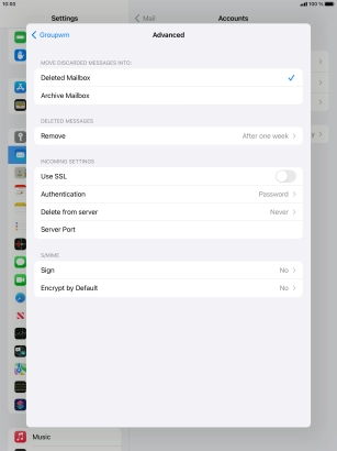 Press the required email account and follow the instructions on the screen to select settings for the specific account.