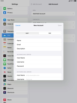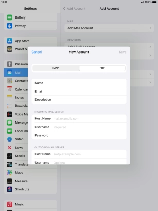 Press Password and key in the password for your email account. Please note that if you're using Vodafone's outgoing server, leave the password field empty.