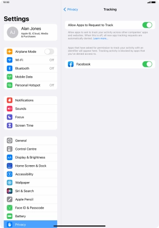 Turn tracking request for downloaded apps on your Apple iPad Pro 11 (2021) iPadOS 15.1 on or off