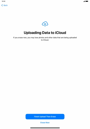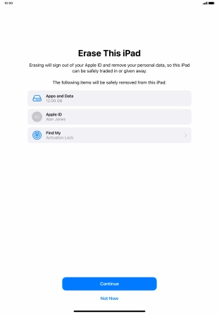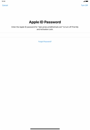 Key in the password for your Apple ID and press Turn Off. Wait a moment while the factory default settings are restored. Follow the instructions on the screen to set up your tablet and prepare it for use.