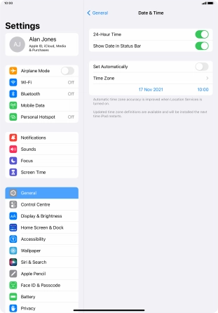 Set date and time on your Apple iPad Pro 11 (2021) iPadOS 15.1