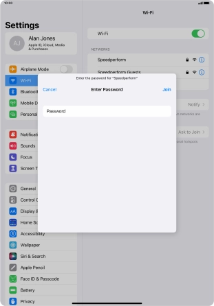 Press the required Wi-Fi network and key in the password for the Wi-Fi network.