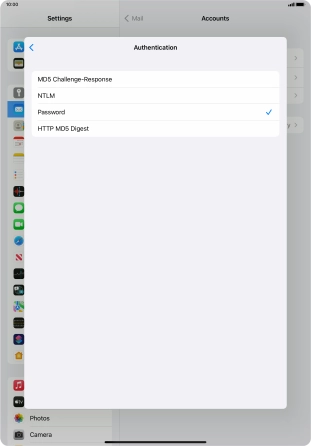 Press Password and key in the password for your email account.