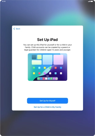 If your tablet will be used by a child below the age of 13, follow the instructions on the screen to set up an Apple ID for the child.