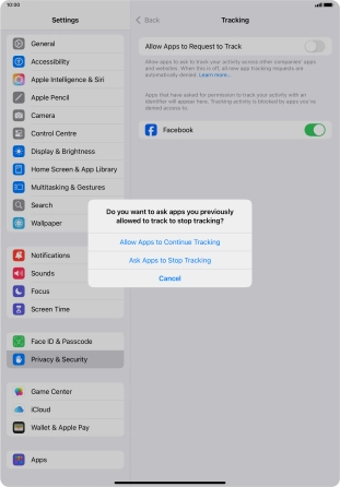 Turn tracking request for downloaded apps on your Apple iPad Pro 11 (2022) iPadOS 18 on or off