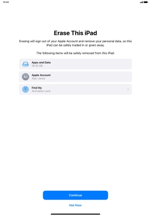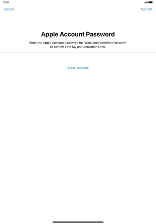 Key in the password for your Apple ID and press Turn Off. Wait a moment while the factory default settings are restored. Follow the instructions on the screen to set up your tablet and prepare it for use.