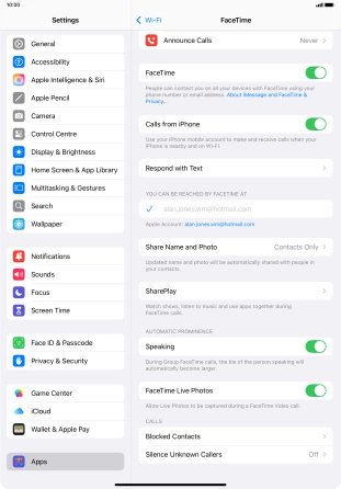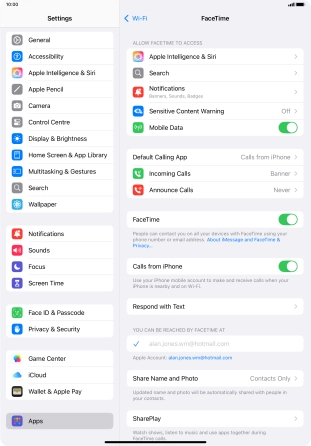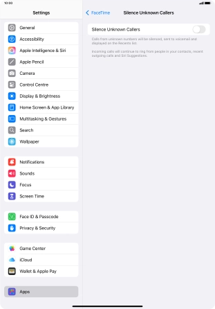 Select FaceTime settings on your Apple iPad Pro 11 (2022) iPadOS 18