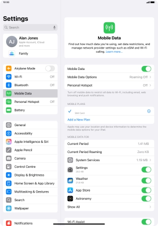 Turn mobile data on your Apple iPad Pro 11 (2022) iPadOS 18 on or off