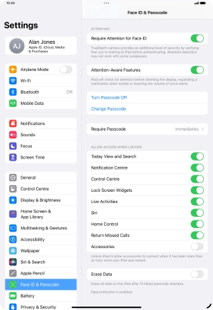 Turn use of lock code on your Apple iPad Pro 11-inch (M4) iPadOS 17 on or off