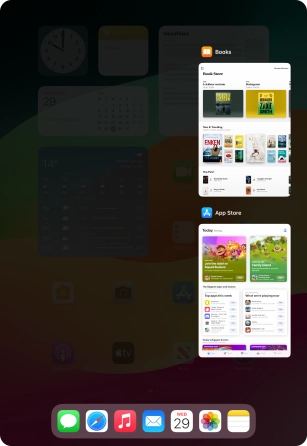 Slide your finger slowly upwards starting from the bottom of the screen until the list of running applications is displayed.