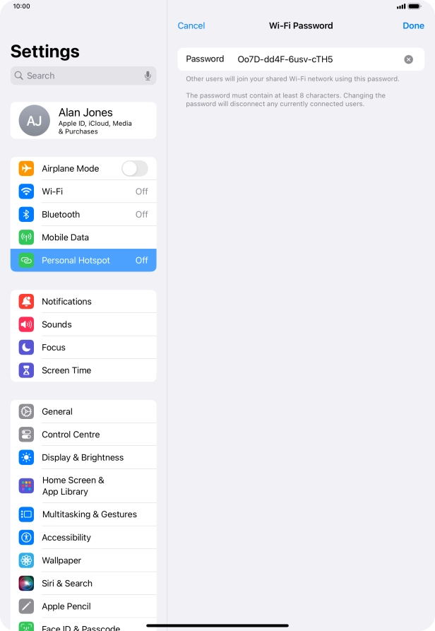 I can't use my Apple iPad Pro 11-inch (M4) iPadOS 17 as a personal hotspot