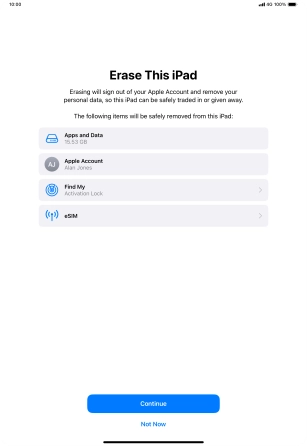 Key in the password for your Apple ID and press Turn Off. Wait a moment while the factory default settings are restored. Follow the instructions on the screen to set up your tablet and prepare it for use.