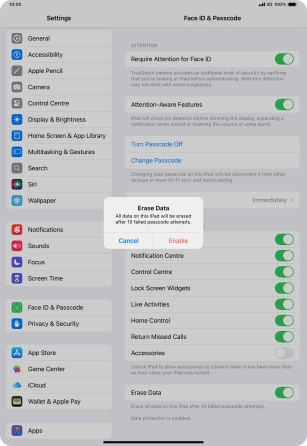 Press the indicator next to "Erase Data" to turn the function on or off.