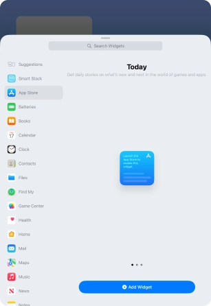 If the required widget is not displayed on the list, press the search field and follow the instructions on the screen to find the required widget.