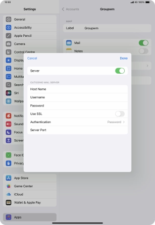 Press Password and key in the password for your email account. Please note that if you're using Vodafone's outgoing server, leave the password field empty.