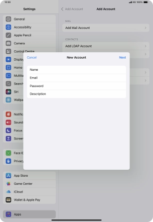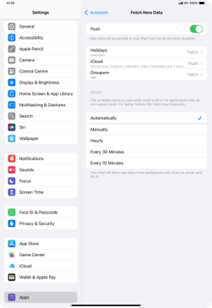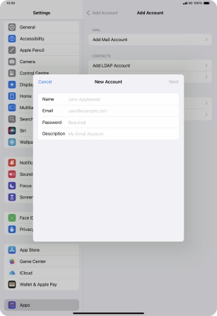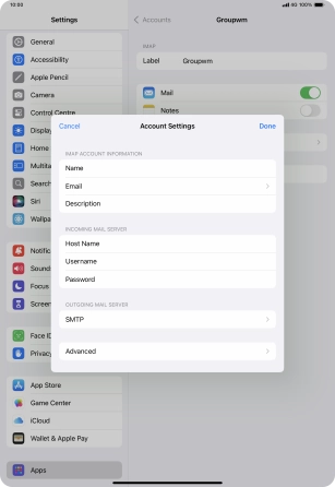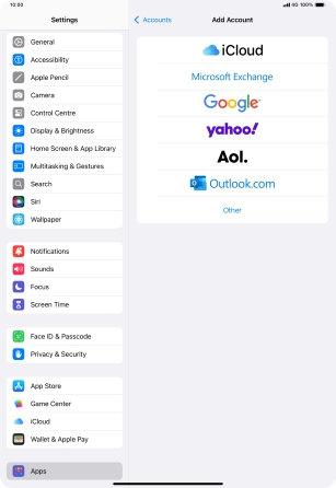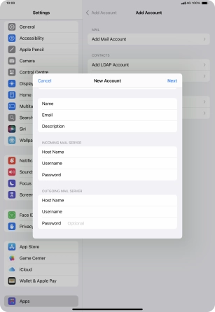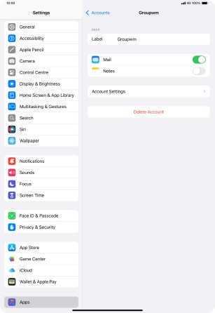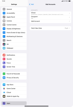 Press the required email account and follow the instructions on the screen to select settings for the specific account.