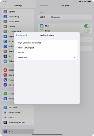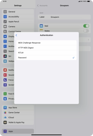 Press Password and key in the password for your email account.