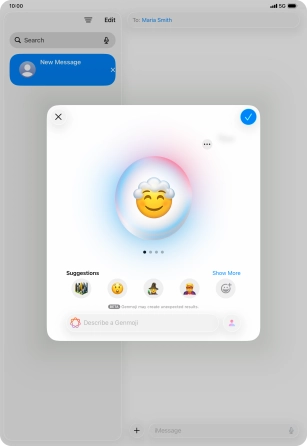 To use the selected Genmoji in your message, press the confirm icon.