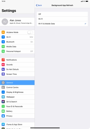 To turn on background refresh of apps using Wi-Fi, press Wi-Fi.