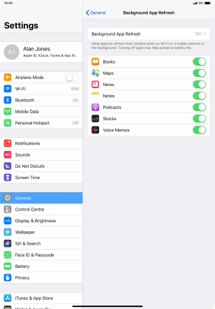 2. Turn background refresh of apps on or off