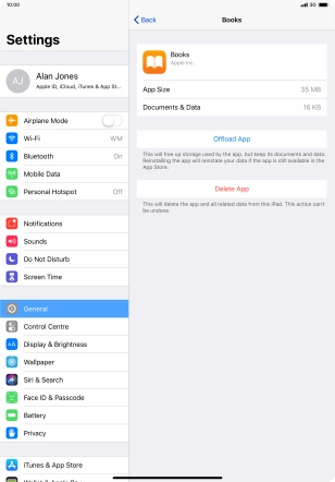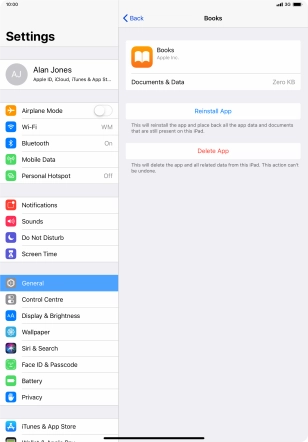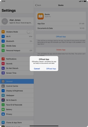 When you use this method, all app settings and data are saved in the tablet memory and are restored when you reinstall the app from App Store on your tablet.