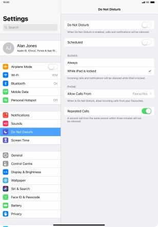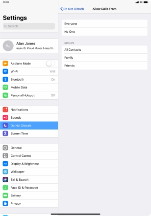 Press the required setting to select which contacts can call you even though Do Not Disturb is turned on.