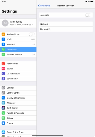 Select network on your Apple iPad Pro 11 iOS 12.1