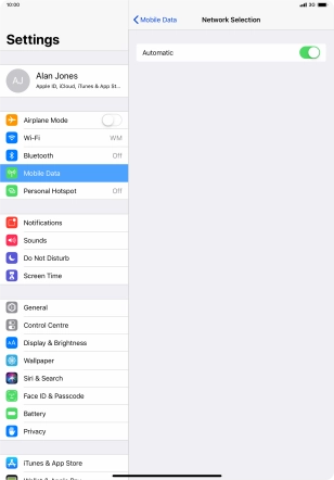 Press the indicator next to "Automatic" to turn automatic network selection on or off.